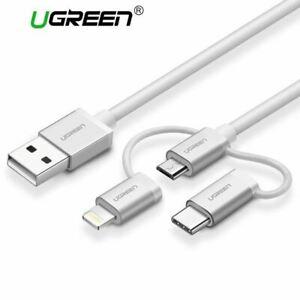داتا كابل USB 2.0 الى Micro USB + Lightning +Type C بطانة فضية بطول 1 متر / UGREEN 50202